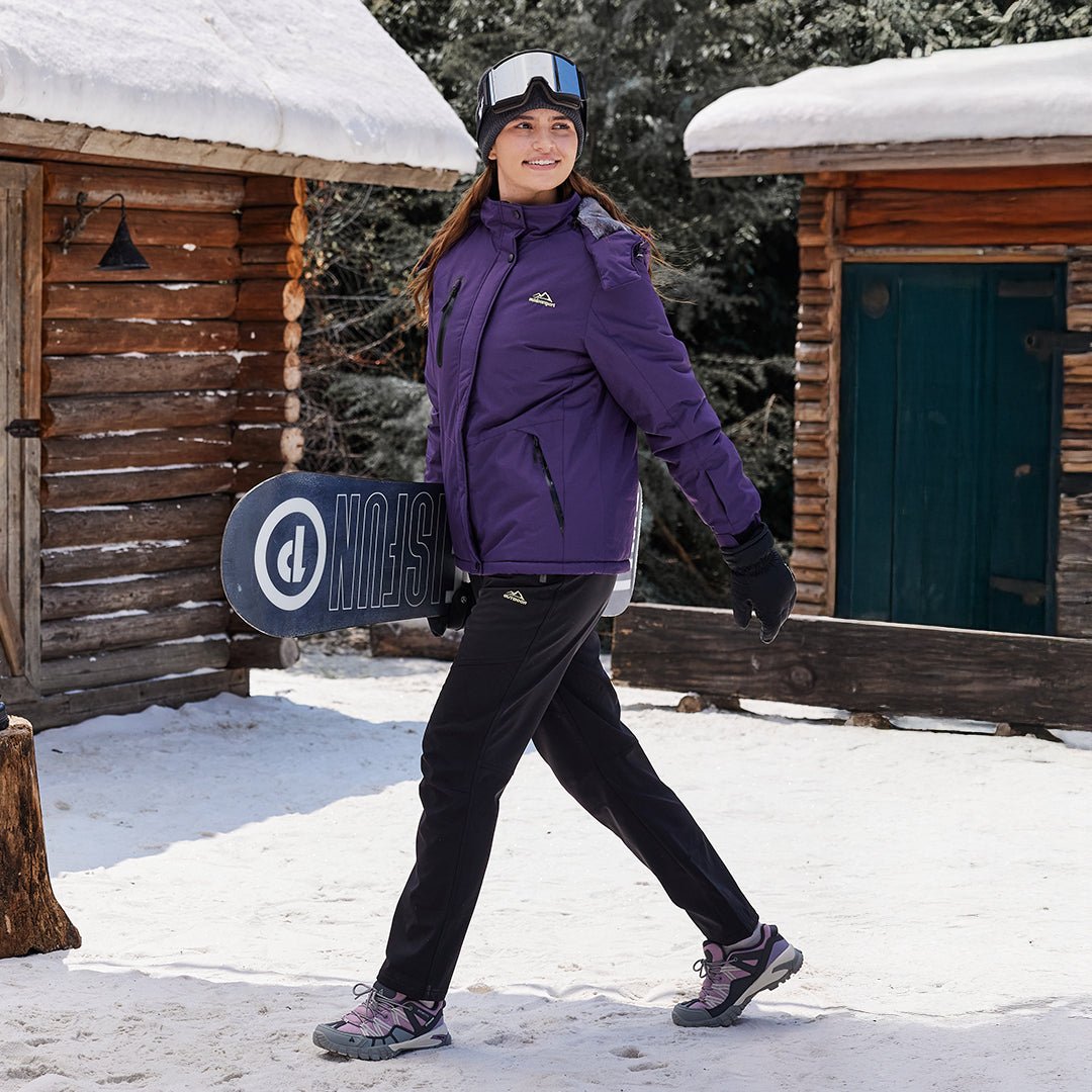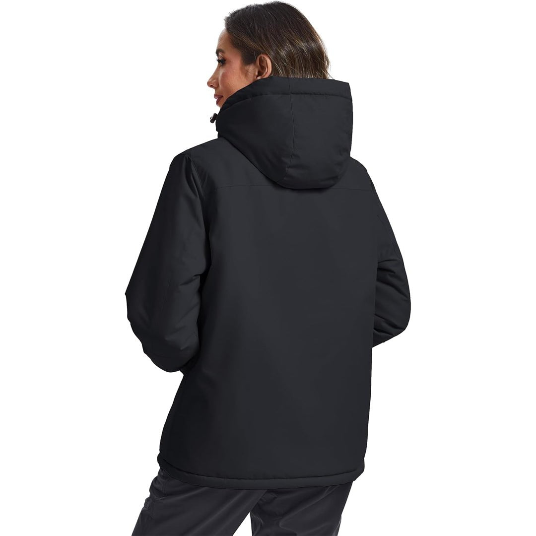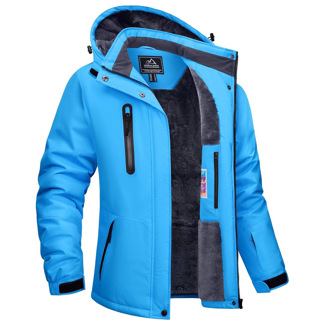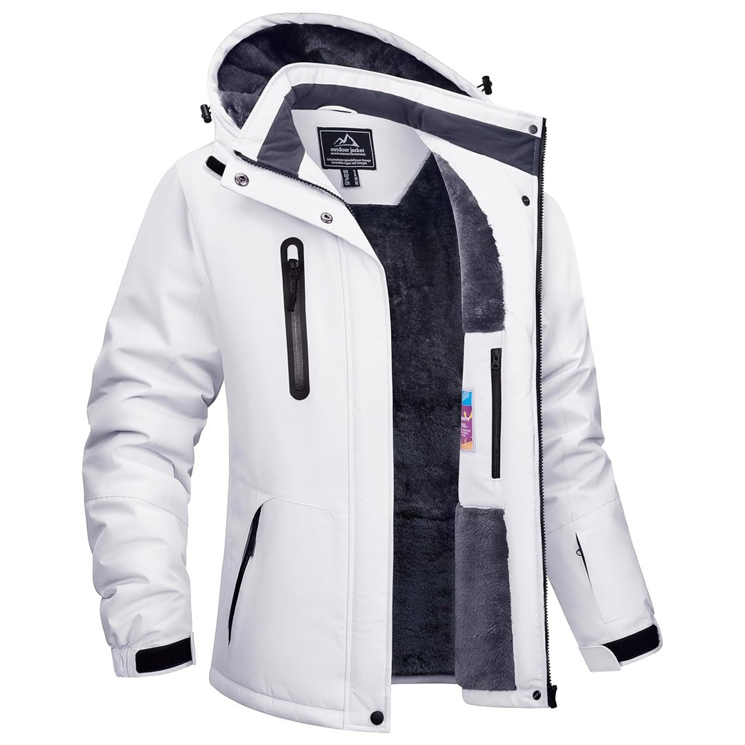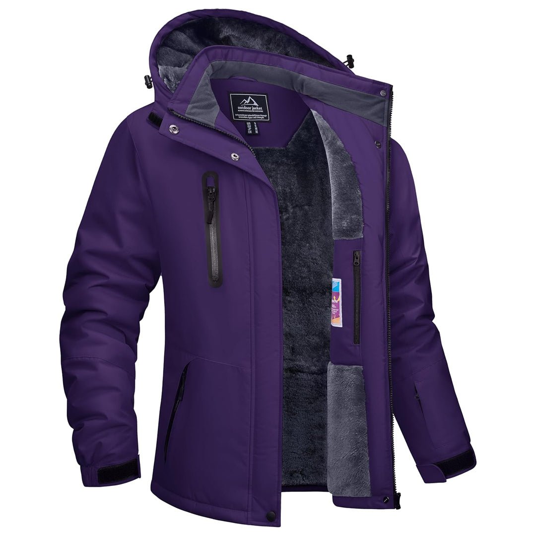 Vandtæt vinterjakke til kvinder med varmt fleecefoer og aftagelig hætte til skibrug
