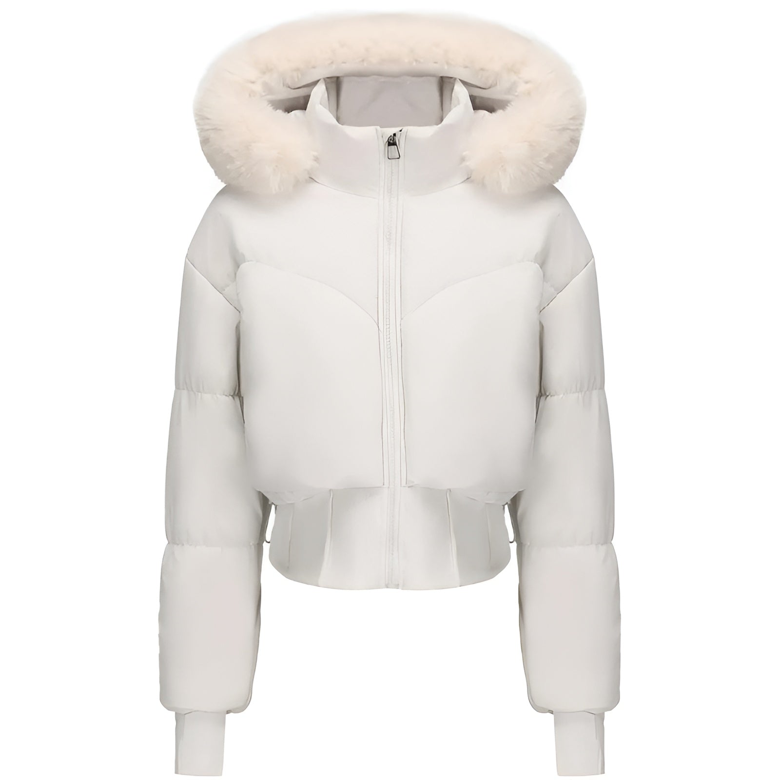 Short Puffer Jacket for Women with Fur Hood | Quilted Winter Jacket with Faux Fur