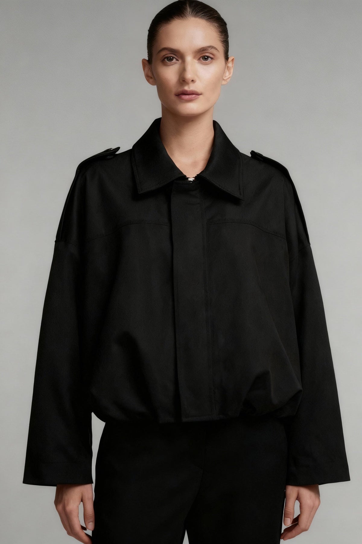 Noir Kort Bomberjakke | Elegant Suede-Look til Dame, Moderne & Stilfuld