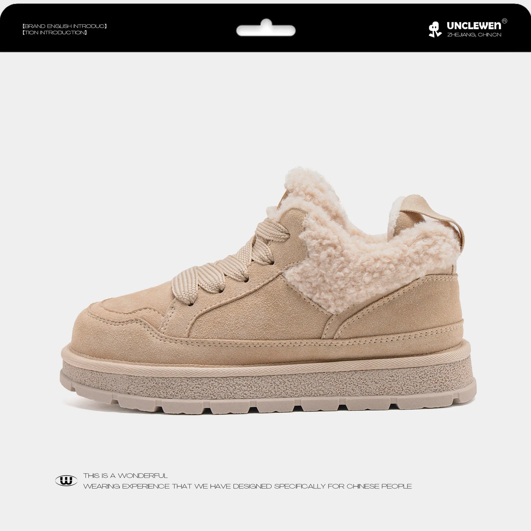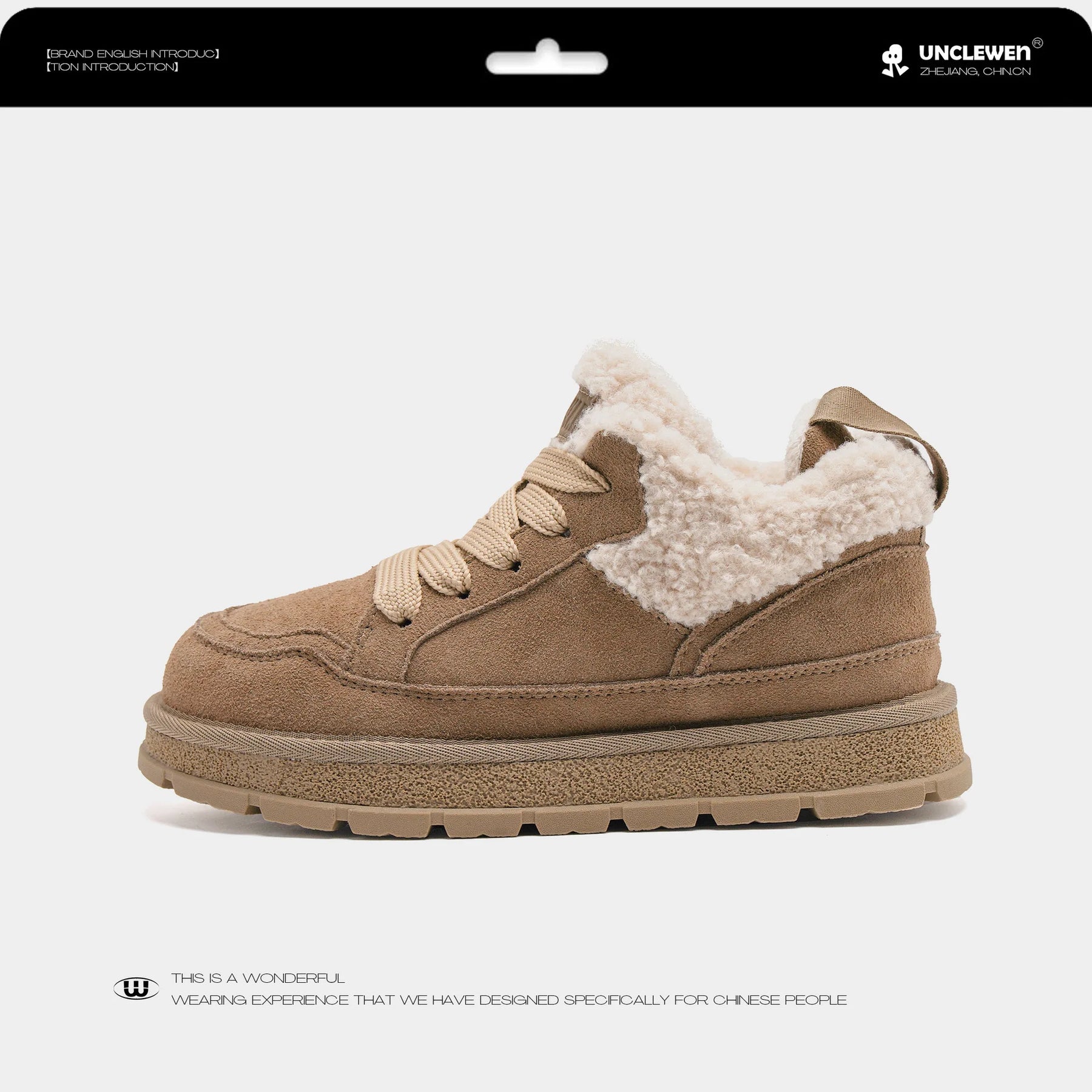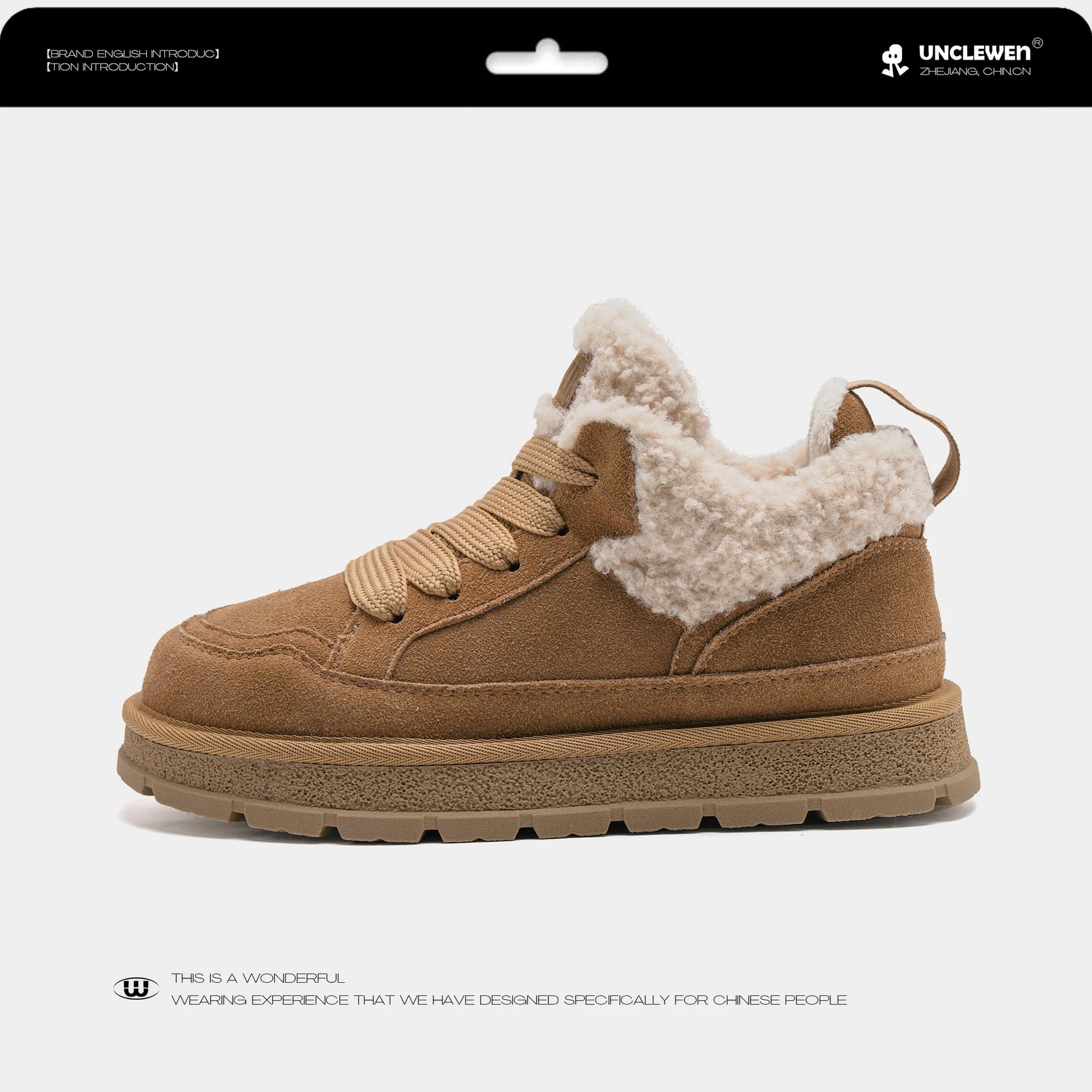 Stivali invernali da donna in pelle | Foderati in pelliccia suola spessa punta tonda