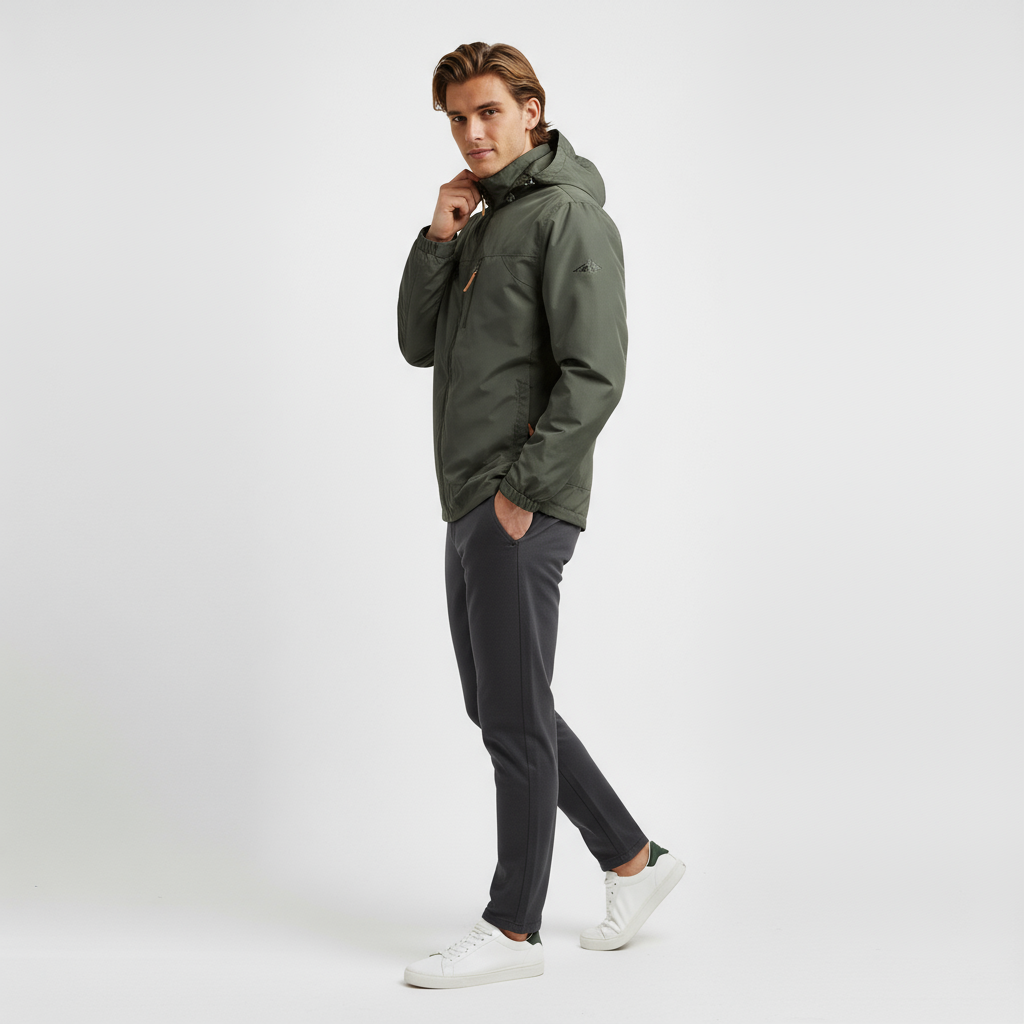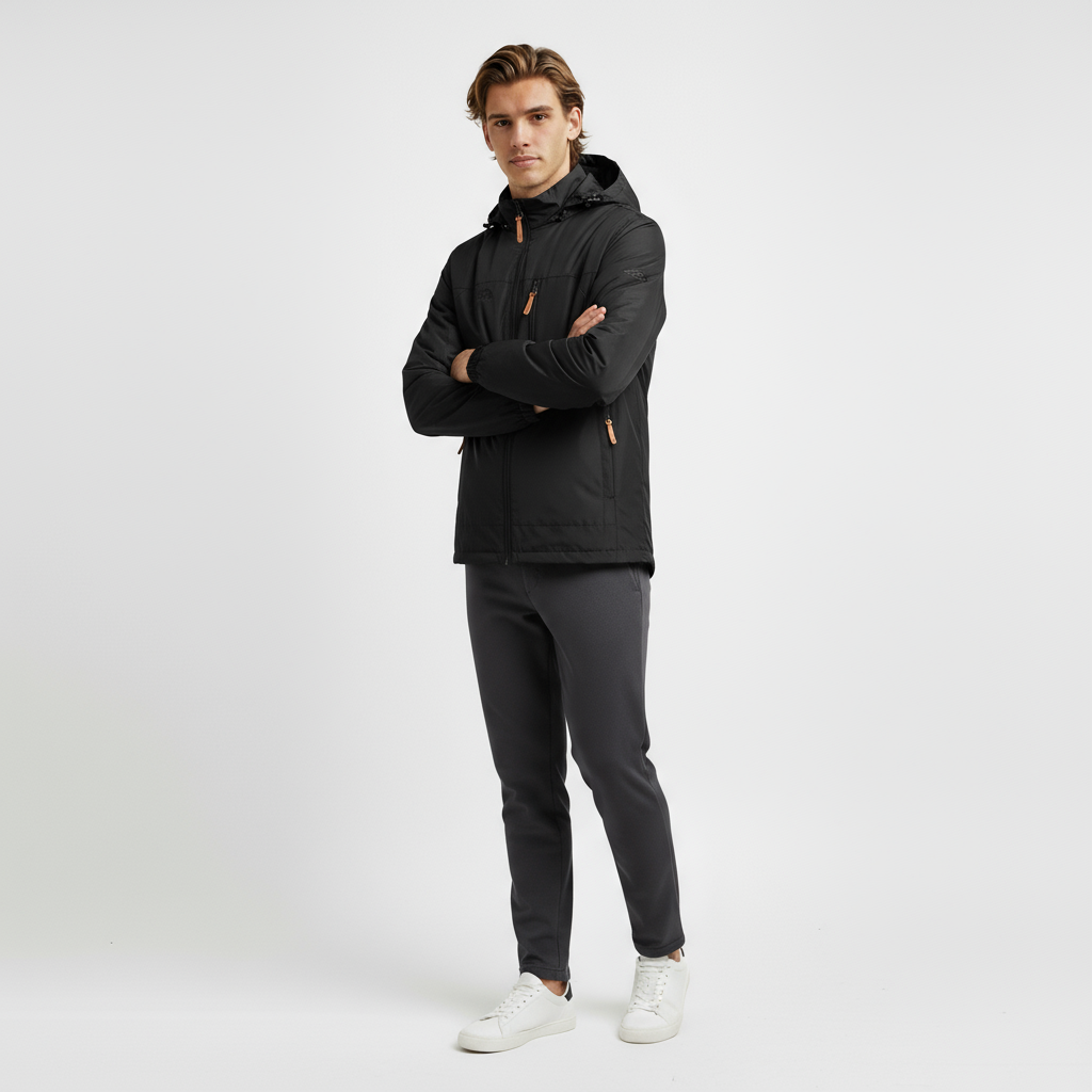 Ta funkcjonalna kurtka outdoorowa dla mężczyzn wykonana jest z lekkiego i odpornego na warunki atmosferyczne materiału, co czyni ją idealną na codzienne aktywności na świeżym powietrzu i aktywny wypoczynek. Kurtka wyposażona jest w stały kaptur, bezpieczny zamek błyskawiczny z przodu oraz praktyczne kieszenie boczne na zamek do bezpiecznego przechowywania. Dzięki normalnemu krojowi i długości do bioder doskonale nadaje się do noszenia warstwowego jesienią i zimą.