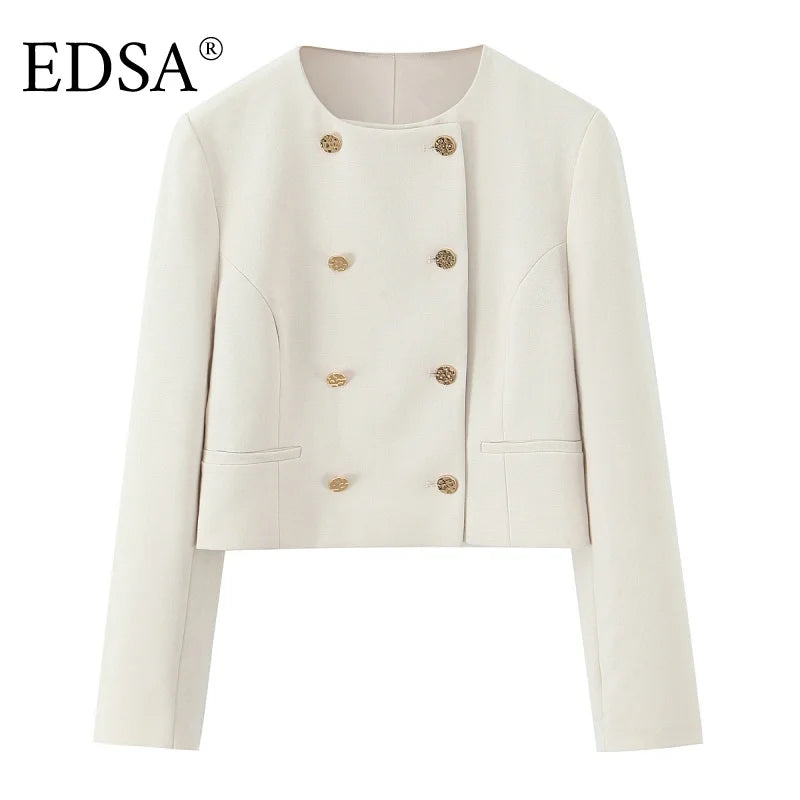 Жіночий укорочений двобортний піджак EDSA з круглим вирізом та довгими рукавами для офісної леді, верхній одяг, пальто